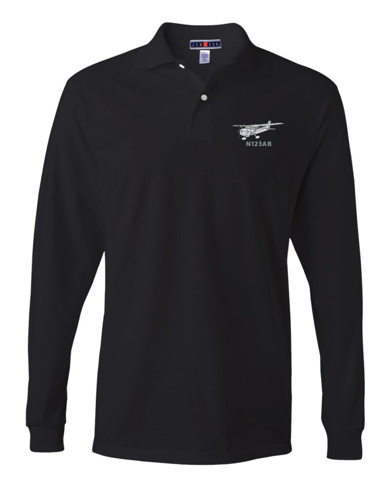 Take your passion for aviation to new heights with our airplane 172 custom tail number embroidered long-sleeve polo shirt. This long-sleeve polo shirt combines style, comfort, and personalization to create a standout piece in your aviation apparel collection.